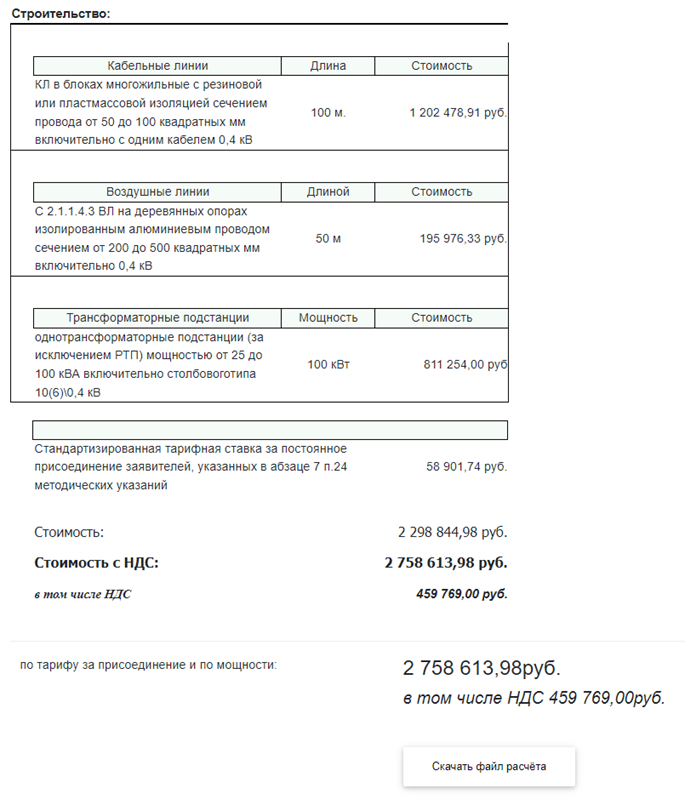 Калькулятор  ТП для расчета стоимости технологического присоединения (ИБР: УТП10)