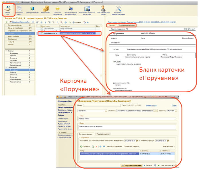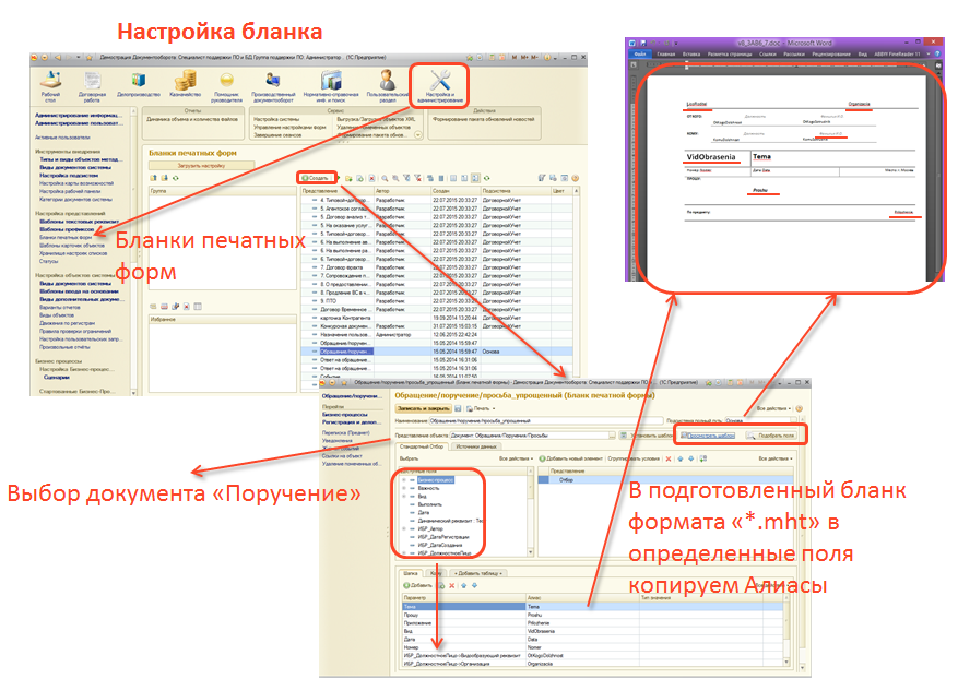 Настройка бланков доступна в разделе "Бланки Документооборота" подсистемы "Делопроизводство" или в подсистеме "Настройка и адмиинстрирование" в разделе "Бланки печатных форм".