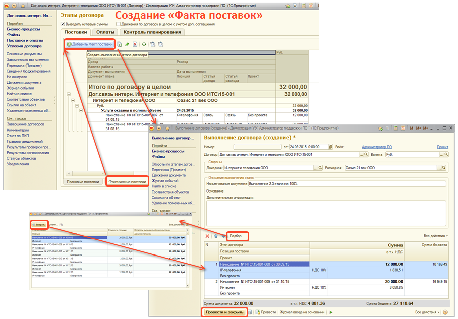 - Способ 1. Командой "Добавить факт поставки" из раздела "Поставки";