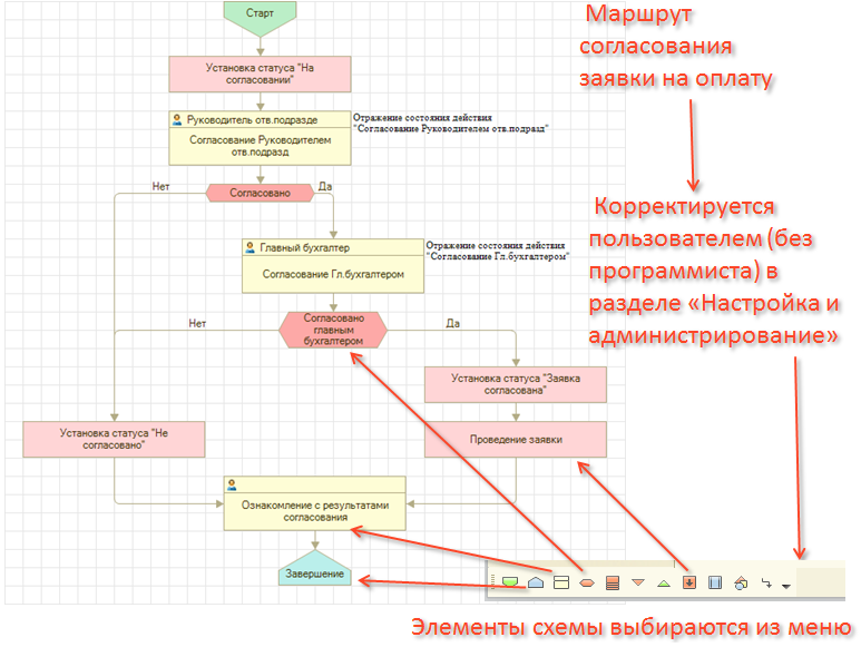 - Маршруты обработки (пример согласования Заявки на оплату/Реестра платежей);