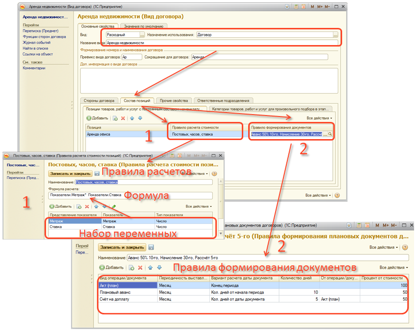 Настройка правил периодичеких расчетов и документов для договоров вида: