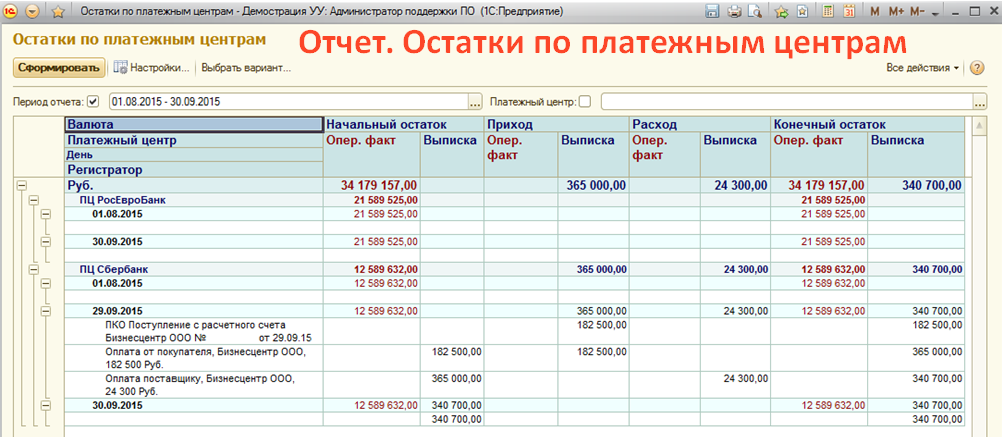 Остатки по платежным центрам