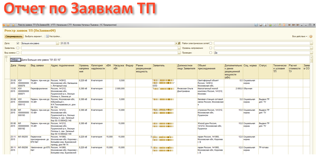 Отчет по Заявкам ТП