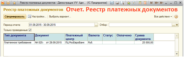 - Реестр платежных документов;