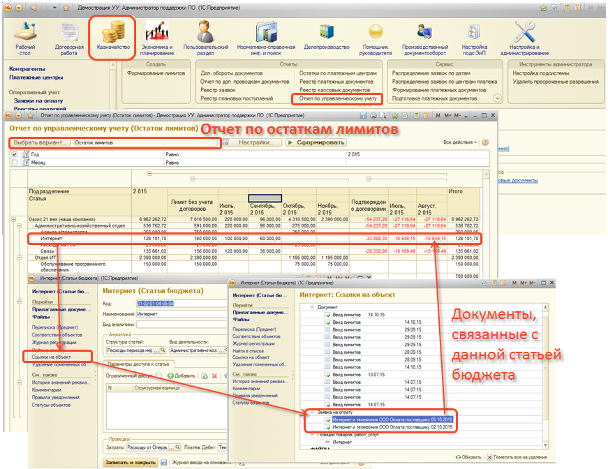 - Отчет по остатками лимитов;