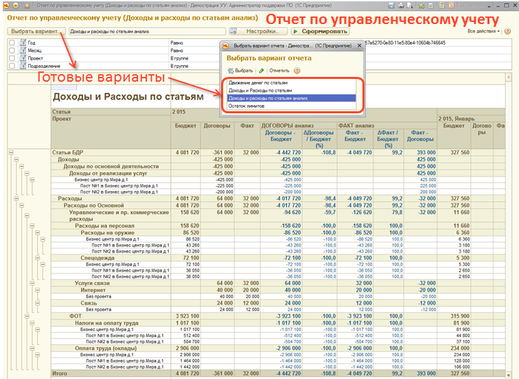- Отчет по управленческому учету;