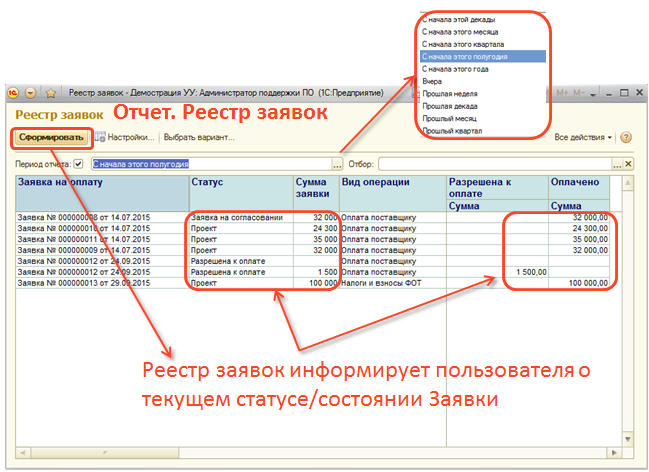 - Реестр заявок;