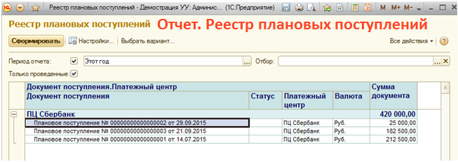 - Реестр плановых поступлений;