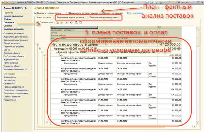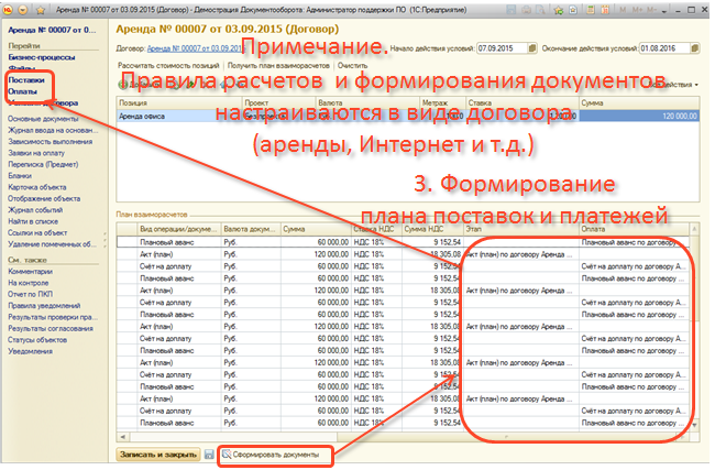 В разделах "Поставок/оплат" сформированы соответствующие плановые документы: