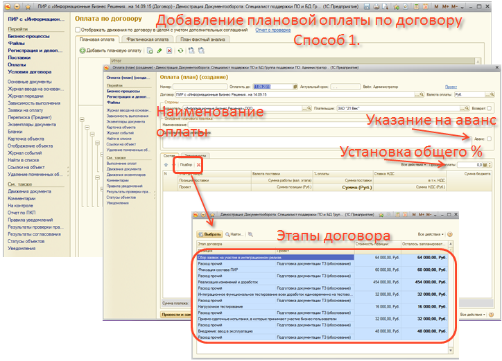 Способ 1. Из раздела "Оплата" с помощью команды "Добавить плановую оплату":
