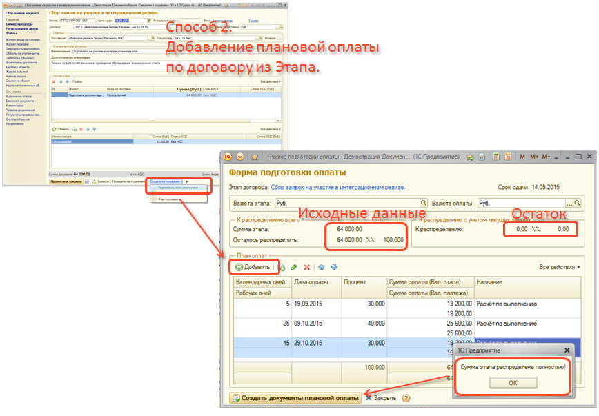 Способ 2. Плановую "Оплату" возможно создать непосредственно из плановой "Поставки", с помощью команды "Создать на основании":