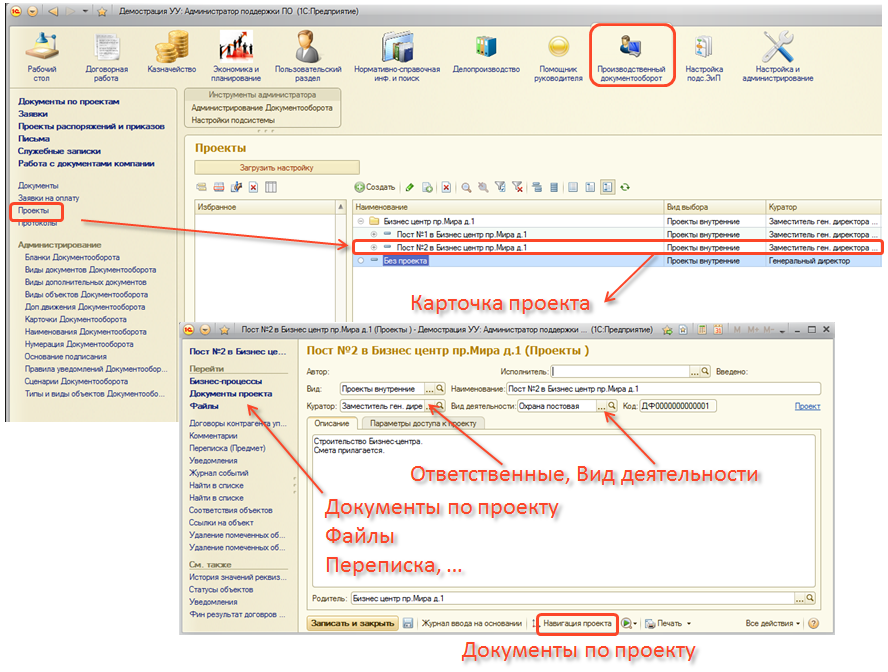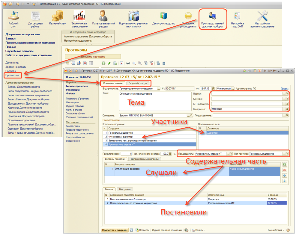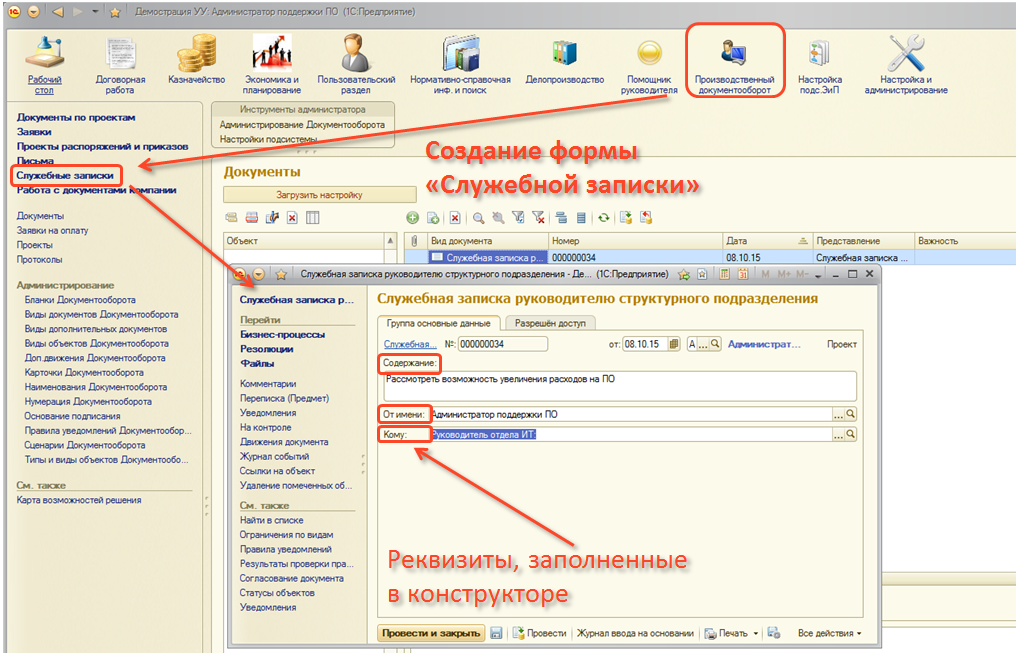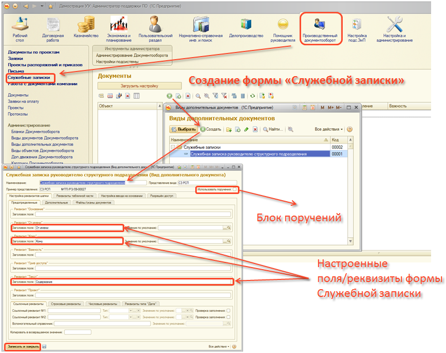 Проекты, Протоколы, Служебные записки, Приказы, Распоряжения, Заявки, письма.