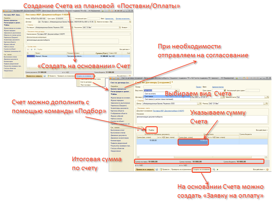 Создание Счета на основании плановых поставок/оплат